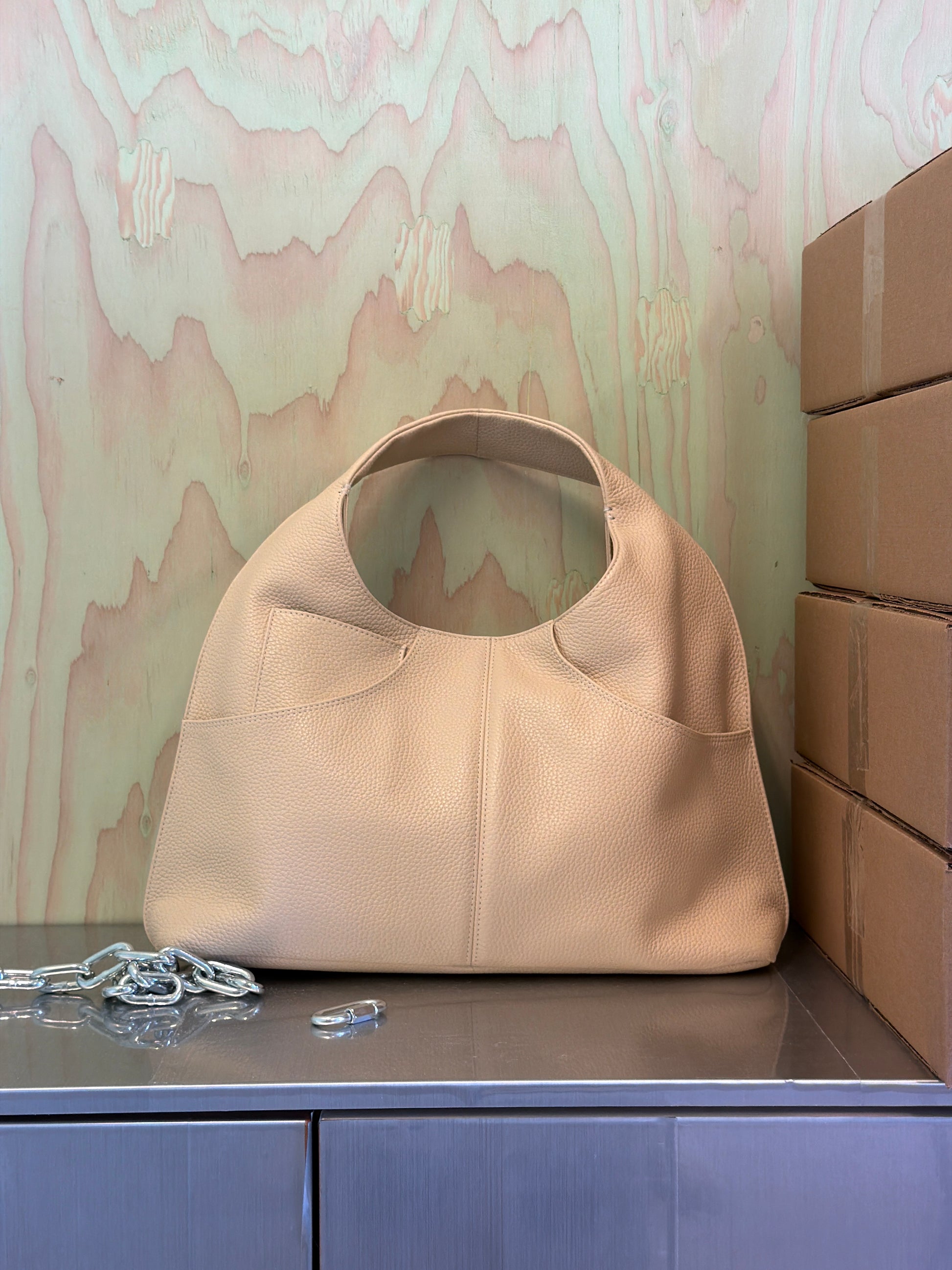 Handmade in Canada from genuine pebble grain leather with three exterior pockets reminiscent of your favourite jeans, it’s practical without trying too hard — perfect for stashing keys, phone, or little extras. The spacious, unlined interior and magnetic closure keep the design simple and functional, making this tote an easy everyday choice.
